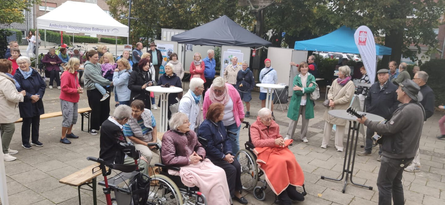 In der Mitte des Marktes konnte man sich mit den leckeren Schnittchen der ARG Grafenwald stärken oder in der „Kleiderstube“ Kirchhellen stöbern. In der Nachbarschaft präsentierten sich der VDK oder der „Wünschewagen“ des ASB.