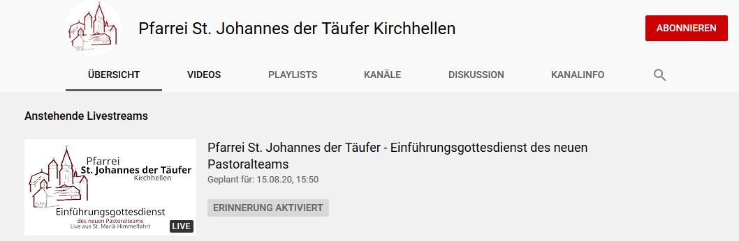 Es gibt nun einen eigenen Kanal unserer Pfarrei in youtube.
